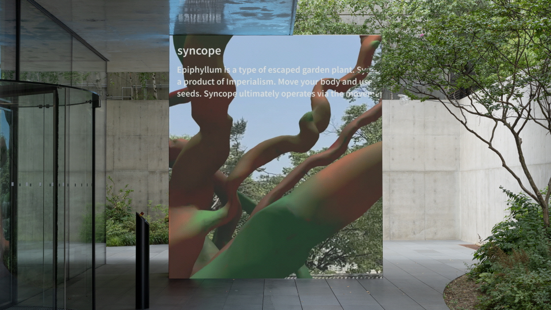 송은은 외부 미디어월에서 새롭게 선보이는 공공미술 프로그램 《Still/ Moving》을 통해 디지털 미디어와 도시 건축이 교차하는 지점에서 미술이 어떻게 공공성을 획득할 수 있는지를 무빙이미지의 언어로 탐구합니다. 현대미술의 실험성과 공공성을 지향하는 비영리 문화공간인 송은은 동시대 시각예술의 흐름을 반영하는 전시와 프로그램을 통해 도시 속 예술의 위치와 역할을 확장해 왔습니다. 프로그램의 첫 회차는 기획 전시 《PANORAMA》의 연계 프로그램으로 (재)예술경영지원센터의 지원 아래 권혜원, 심래정, 전소정, 홍승혜 네 작가가 참여합니다. 로비와 야외 정원을 유기적으로 연결해 디지털 구조물과 자연이 조우하는 독특한 조형적 조건을 형성하고, 송은의 입구에서 감각을 전환시키는 매개체로 기능하며 일상과 예술의 문턱을 재정의합니다. 송은의 장기적 공공 프로젝트 ‘Not Your Ordinary Public Art’ 시리즈의 일환으로 전시 기간 외에도 도시 일상 속에서 유동적으로 작동하는 예술 실험의 장으로 확장됩니다.