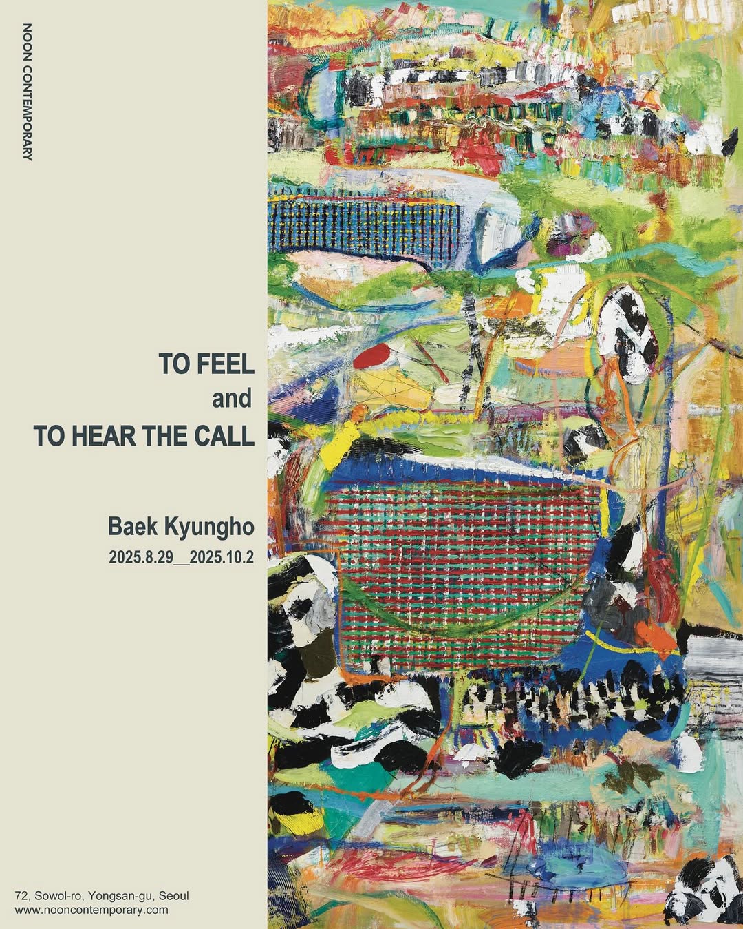 제23회 송은미술대상전 본선에 진출한 백경호 작가의 개인전 《느끼고 요구를 듣는다》가 눈 컨템포러리에서 개최합니다. 회화의 물질성과 자율성을 탐구해 온 작가는 화면의 표면과 질감을 통해 회화가 발화하는 가능성에 주목해 왔습니다. 원형과 사각형 캔버스를 병치했던 이전 실험에 이어, 이번 전시에서는 전형적인 사각 프레임으로 돌아와, 회화가 제기하는 요구와 응답의 관계를 새롭게 사유합니다. |