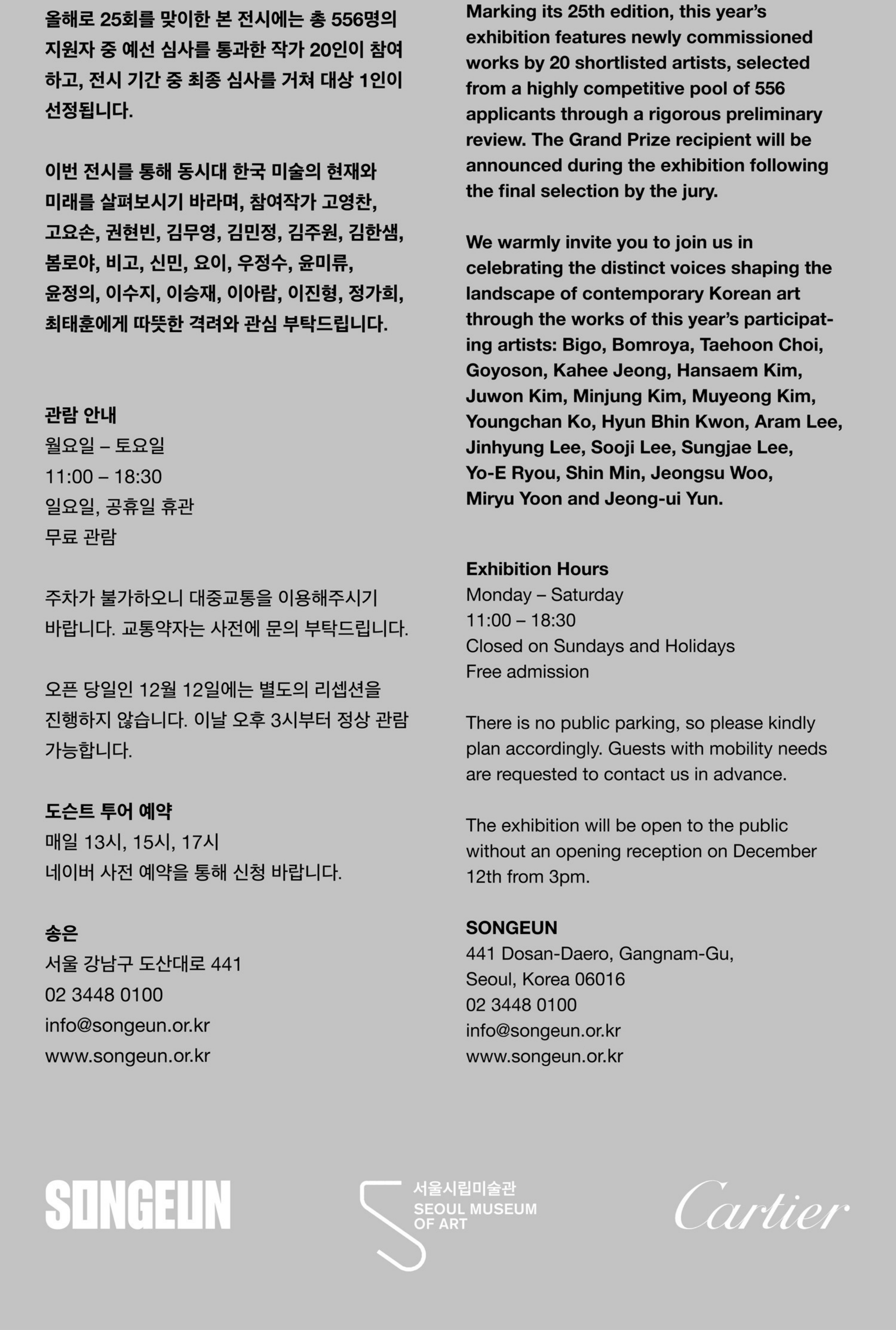 [SONGEUN] 《제25회 송은미술대상전》 초청장 (2025. 12. 12 - 2026. 2. 14)